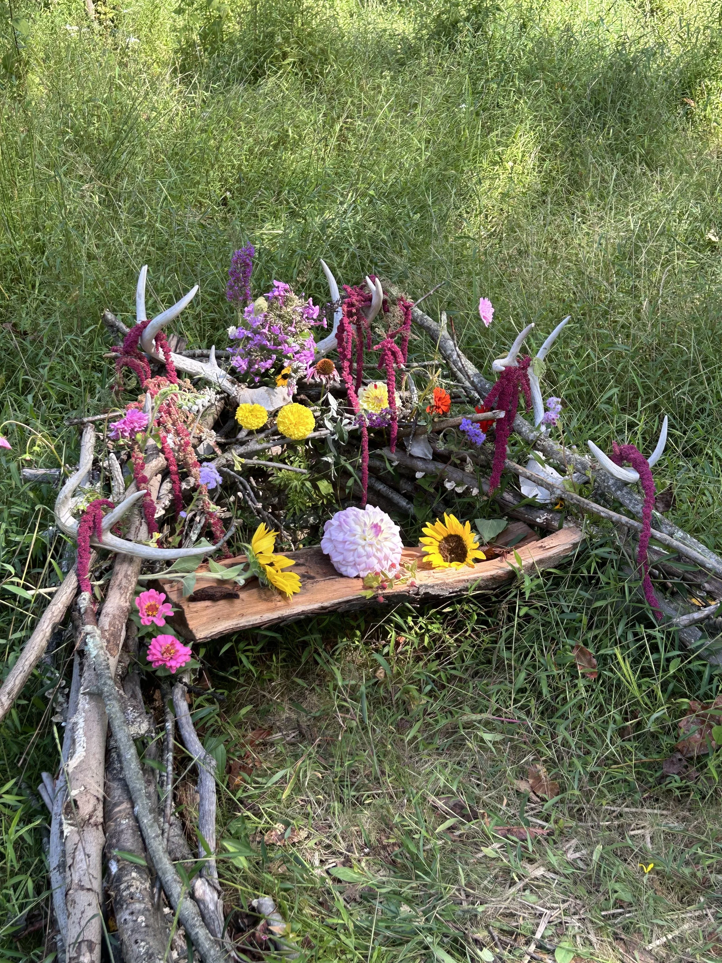 We had a beautiful summer here. Kathy’s wildflower meadow was in full bloom, and the local wildlife flourished. In this newsletter read about how one family found healing through natural burial, how we get ready for winter at the farm, as well as how we handle winter burials. We are highlighting recent events and promoting upcoming events. These include: Forest Bathing and QiGong on November 2nd, a coffin building workshop in later early November, and a Winter Solstice Celebration on December 21st.